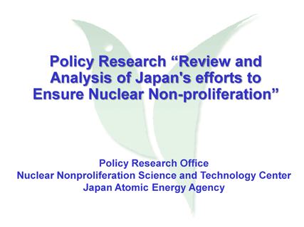 Japan Atomic Energy Agency's Nuclear Nonproliferation Science and Technology Center conducted policy research which reviewed and analyzed Japan's efforts to ensure nuclear non-proliferation. Attached file is a brief explanation of this policy research.