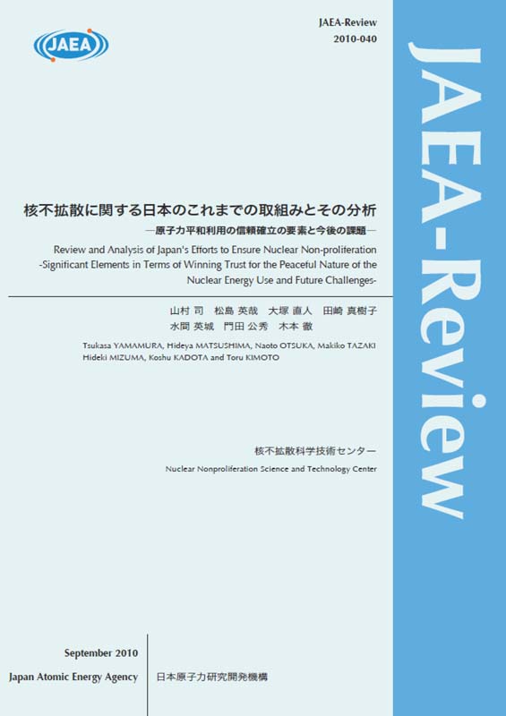 - 核不拡散に関する日本のこれまでの取組みとその分析に関する研究(成果報告書:JAEA-Review-2010-040)