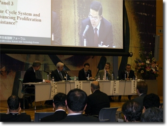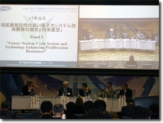 パネル3では、第4世代原子力システム(GEN-IV)、米国国際原子力エネルギー・パートナーシップ(GNEP)、IAEAのINPRO(International Project on Innovative Nuclear Reactors and Fuel Cycles)、原子力機構を中心とした高速増殖炉サイクル実用化戦略調査研究(FS)、及びフランス等において検討が進められている将来の原子力システムにつき、その開発の状況と各々のシステムにおける核拡散抵抗性の高い技術について紹介された。露は、こういった国際的な取り組みの中で、いかに技術的及び制度的に核拡散抵抗性を向上していくかを述べた。その後、抵抗性を軸にした開発のあり方、経済性との関係、国際協力の方向性について議論が行われた。概要は以下の通り。
