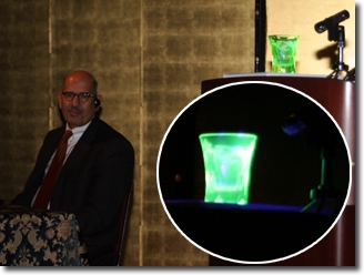 主催者より、講演を行ったエルバラダイ事務局長に対して、記念品としてウランガラスを贈呈した。
