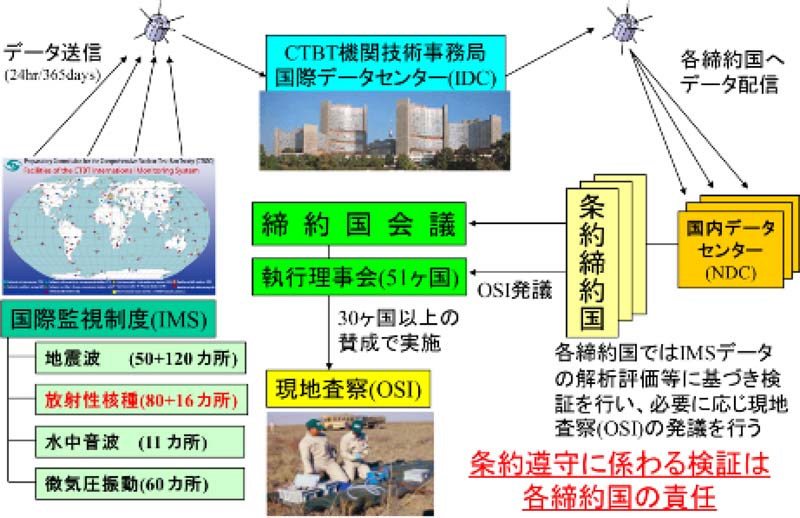 包括的核実験禁止条約(CTBT)は、宇宙空間、大気圏内、水中、地下を含むあらゆる空間での核兵器の実験的爆発及びその他の核爆発を禁止し、加盟国がそれを順守していることを検証する体制の確立等を規定したものです。