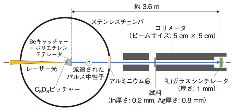 大阪大学の LDNSを用いた透過中性子測定実験の概要図